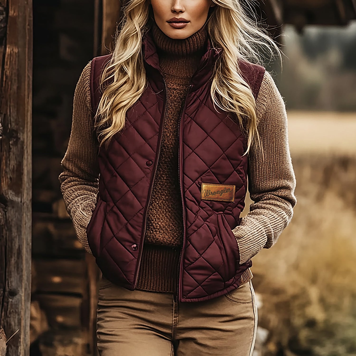 Retro Western Ethnic Cowboy Style Padded Vest Women's Zipper Stand Collar Sleeveless Jacket