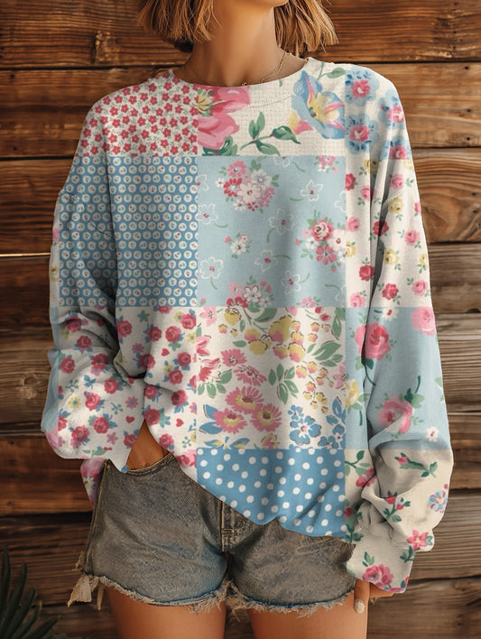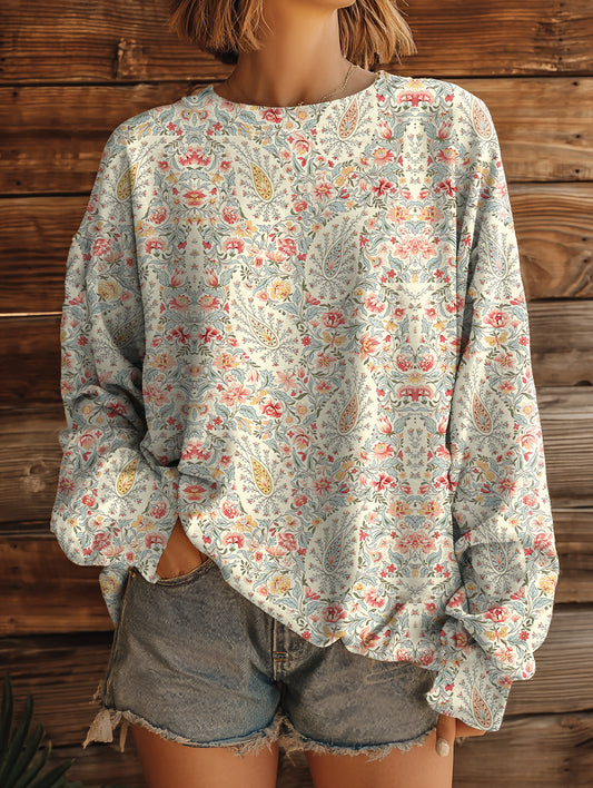 Women's Vintage Floral Pattern Art Print Casual Crew Neck Sweatshirt