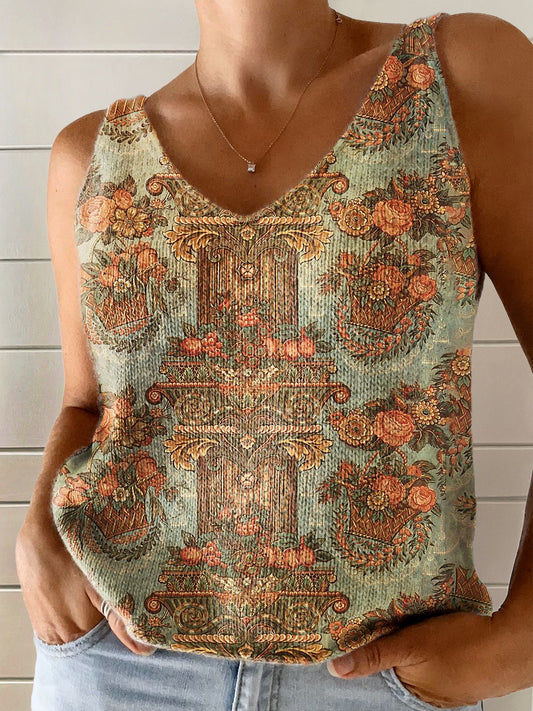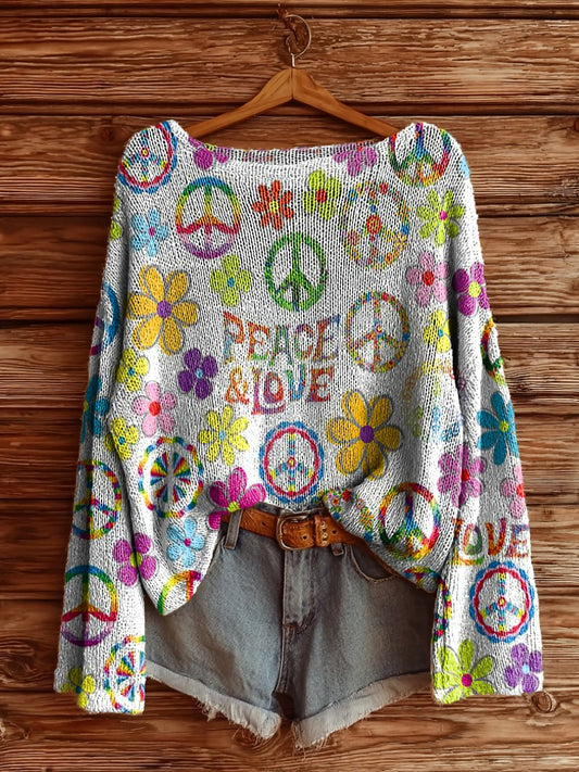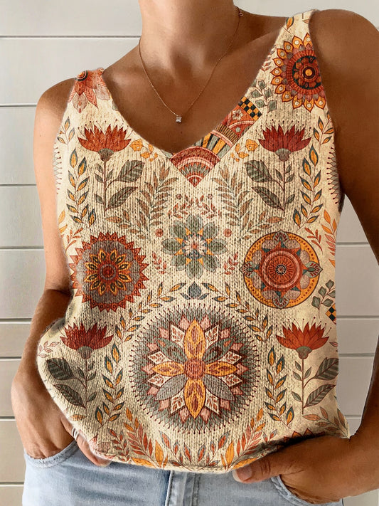 Women's Vintage Ethnic Floral Art Print Casual Pullover Sweater