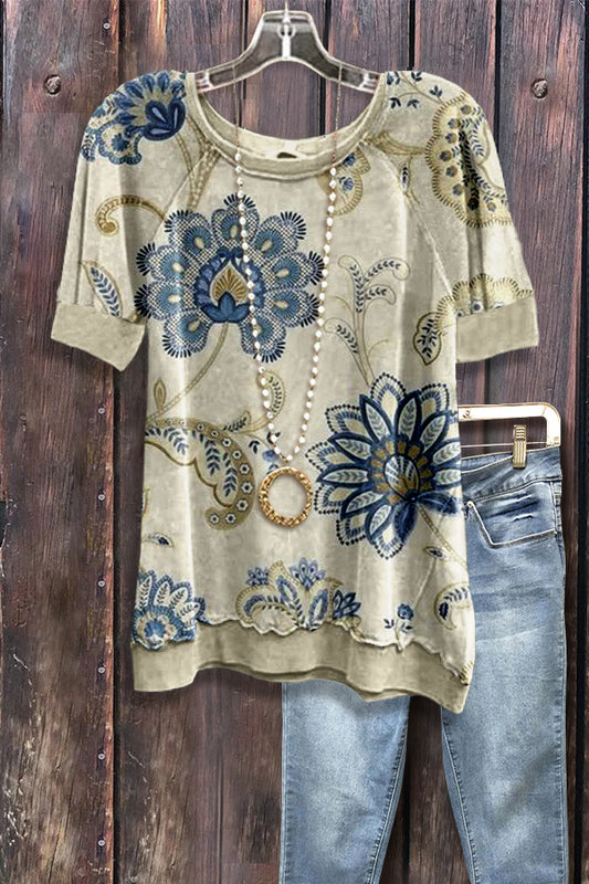 Women's Vintage Ethnic Floral Art Art Print Casual Long Sleeve T-shirt