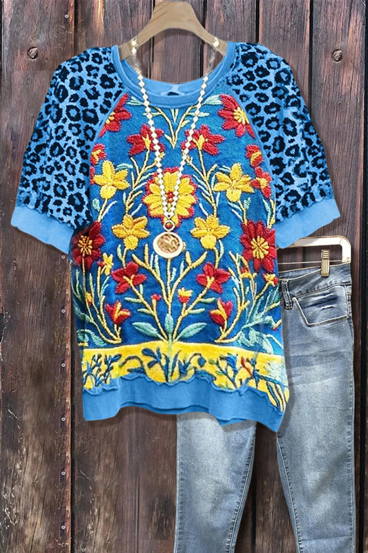 Women's Bohemian Floral Art Print Casual V-neck Long Sleeve T-shirt