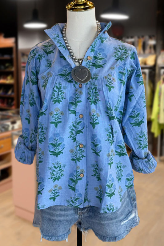 Women's Vintage Floral Art Print Casual Long Sleeve Comfortable Cotton Shirt