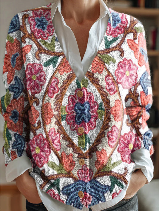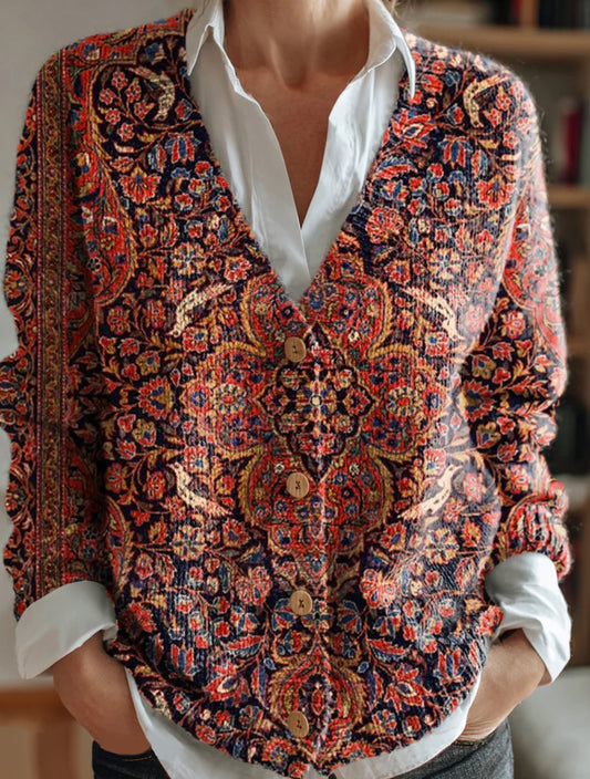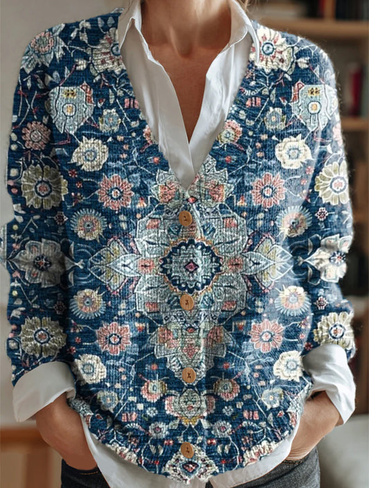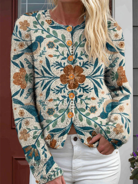 Women's Casual Christmas Tree Button Knit Sweatshirt