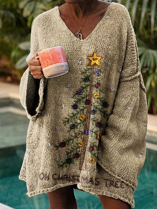 Christmas Party Polo Collar Shiny Loose Sweater Top