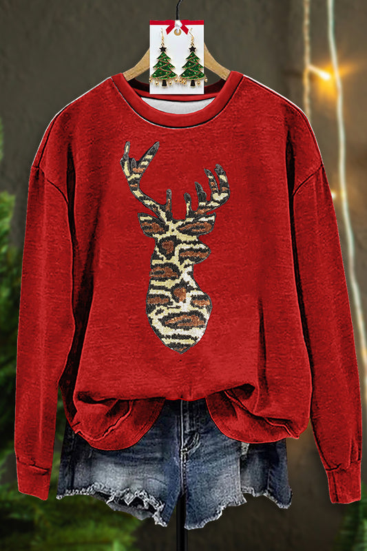Women's Casual Christmas Splicing Leopard Print Contrast Double-Sided Jacket