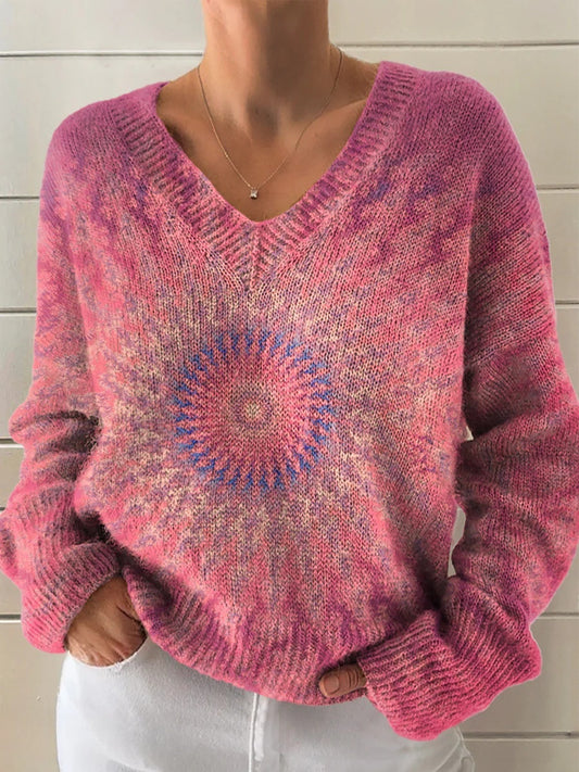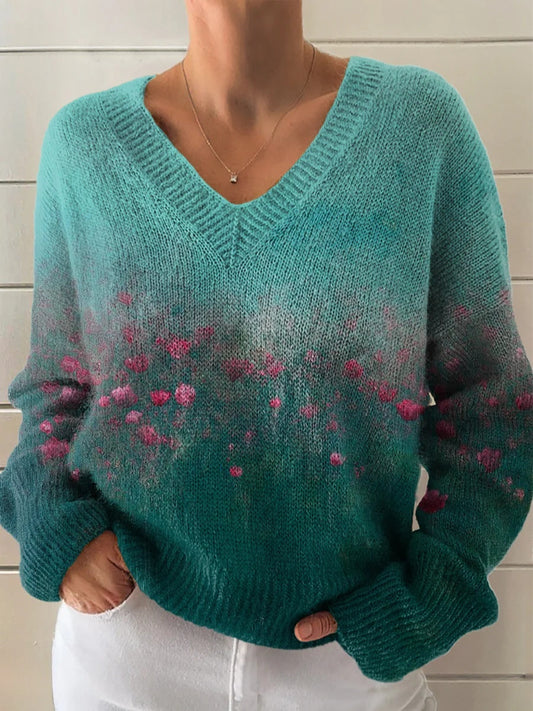 Dreamy Starry Sky Gradient Polo Collar Knit Sweater Top