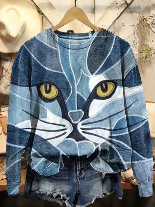 Women'S Casual Loose Color-Blocked Sweatshirt