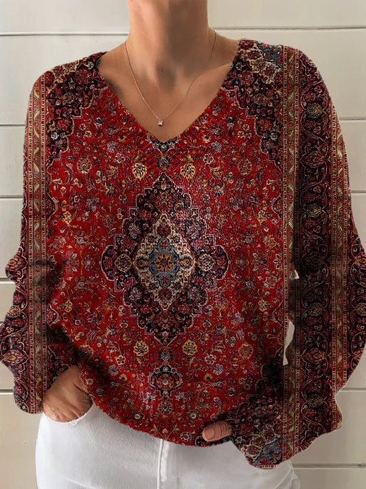 Women's Solid Color V-neck Ruffled Long Sleeve Casual Loose Velvet Shirt