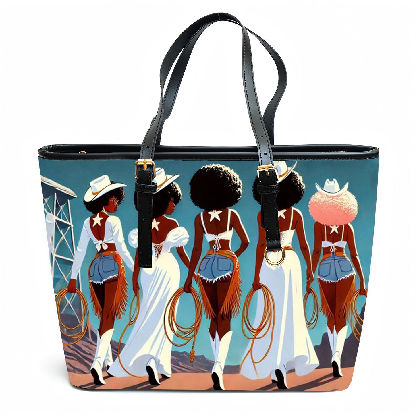 Black Cowgirls Personalized Leather Totebag