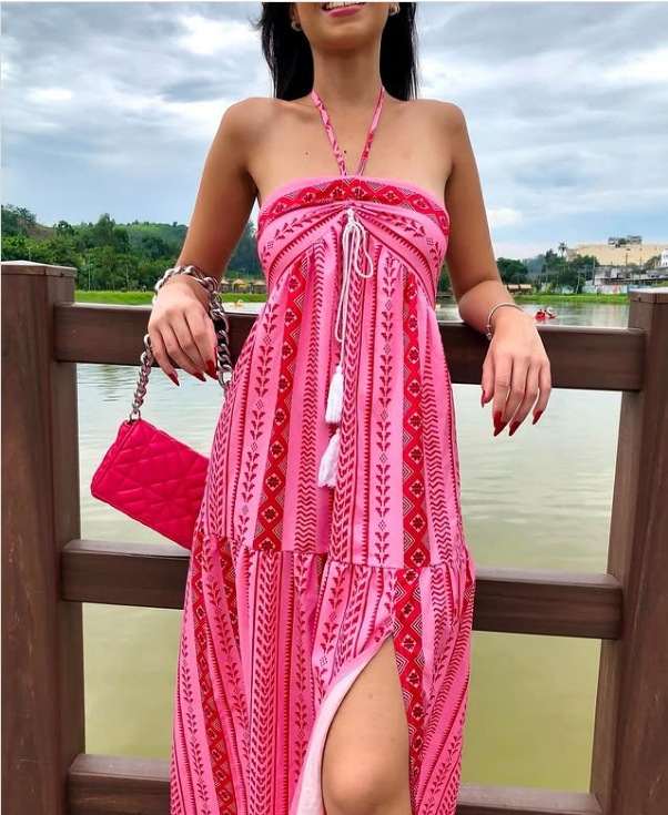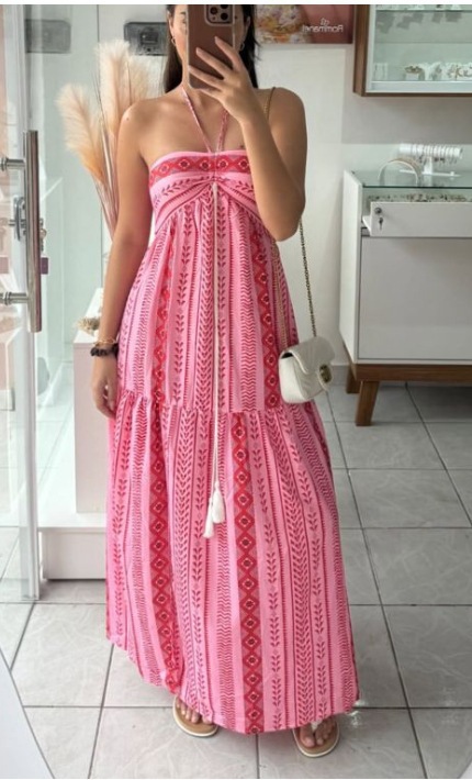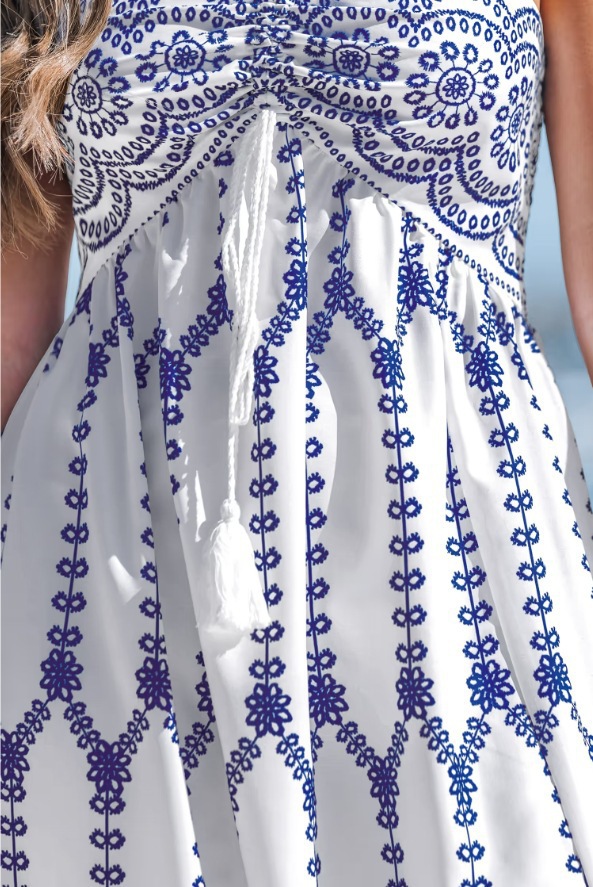 Boho Halter Printed High Slit Tiered Maxi Dress | Ethnic Style Vacation Beach Dress