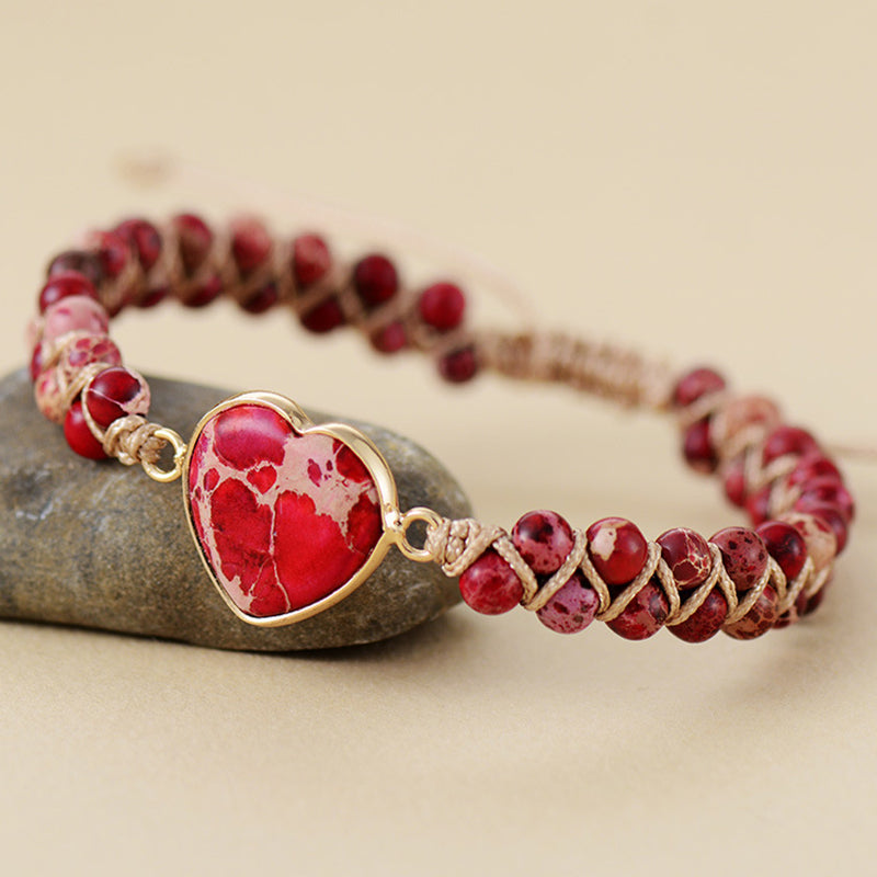 Peach Heart Double Braided Bracelet
