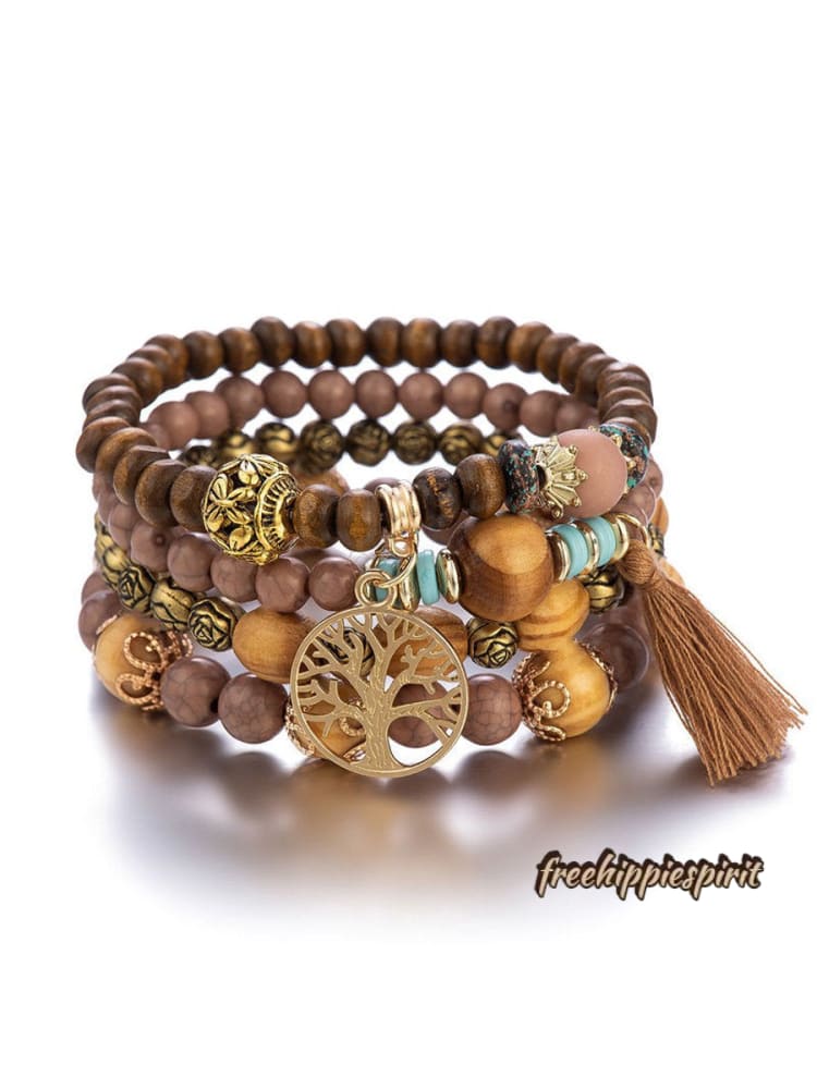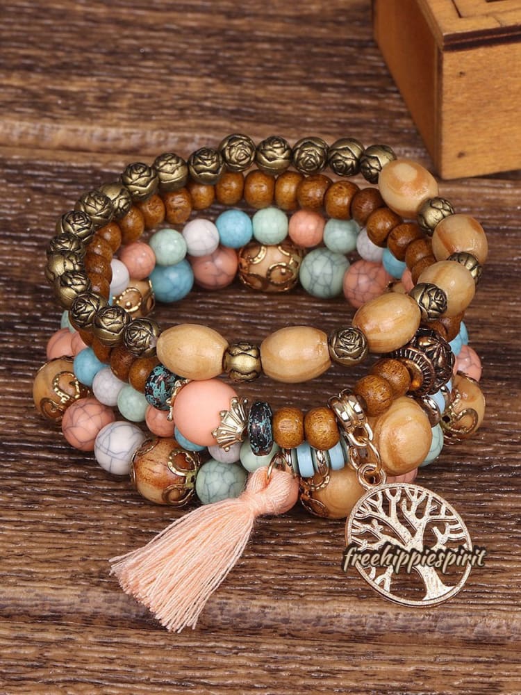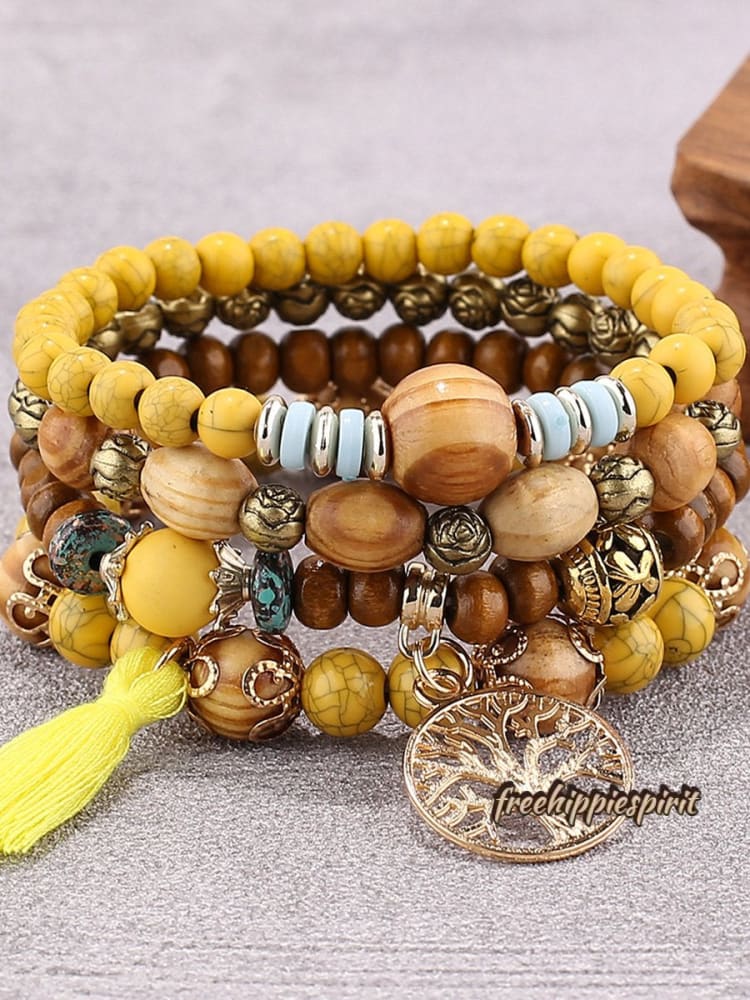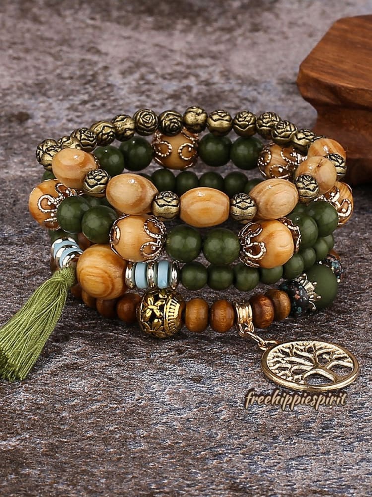 Ethnic Multi Layered Wooden Beads Stretch String Bracelet