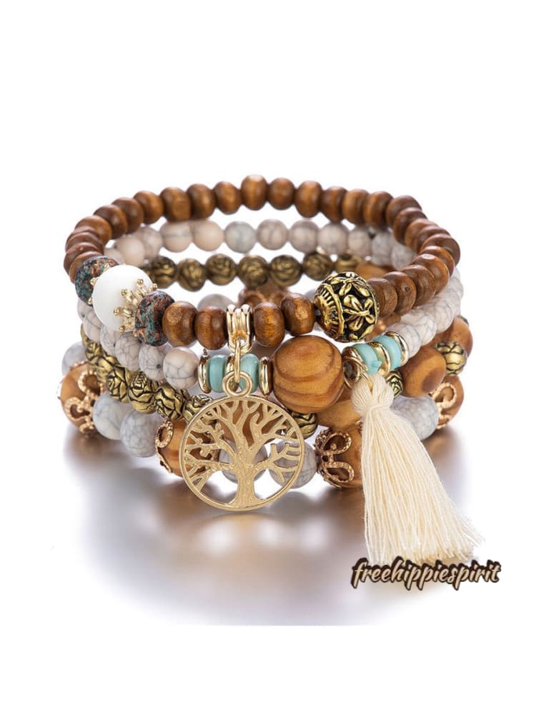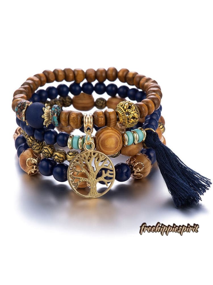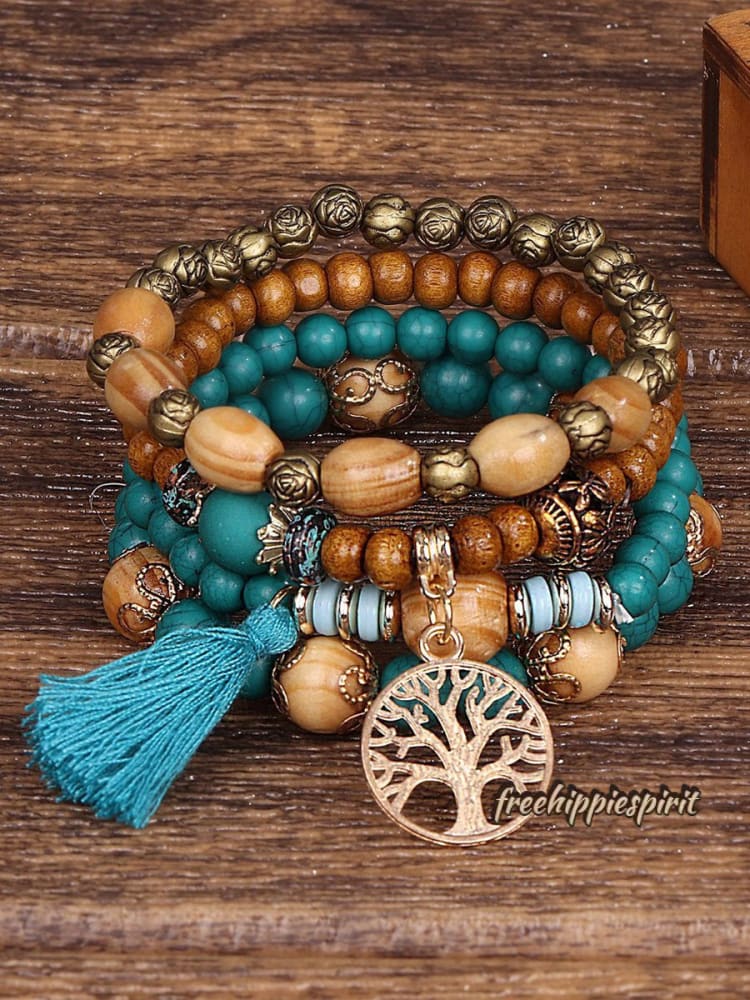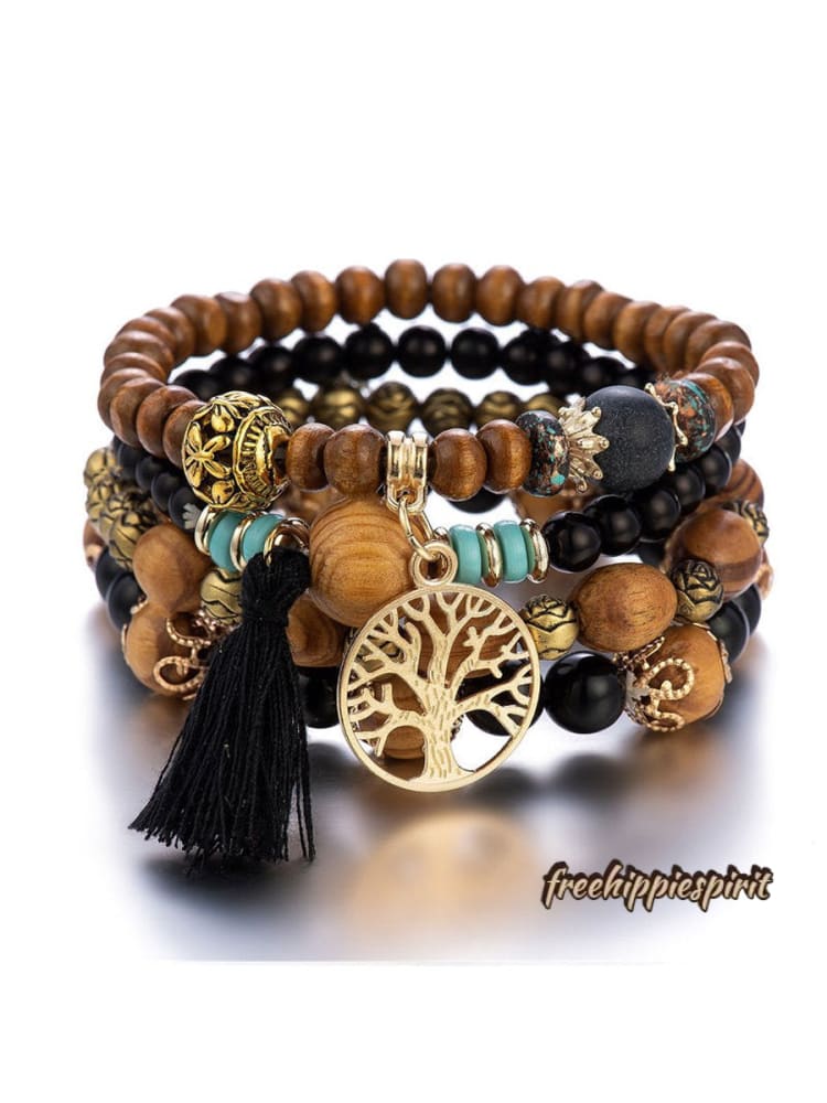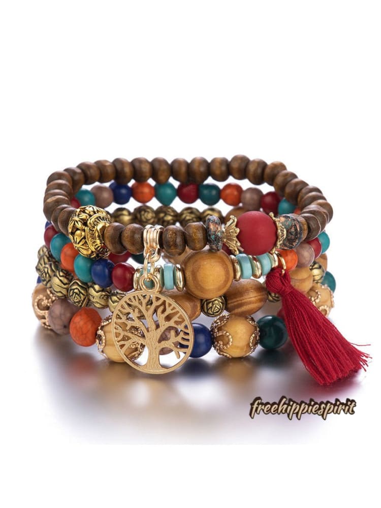 Ethnic Multi Layered Wooden Beads Stretch String Bracelet