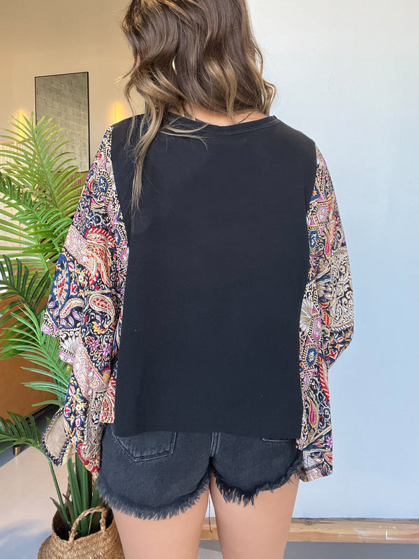 Washed Vintage Graphic Tee with Batwing Sleeve