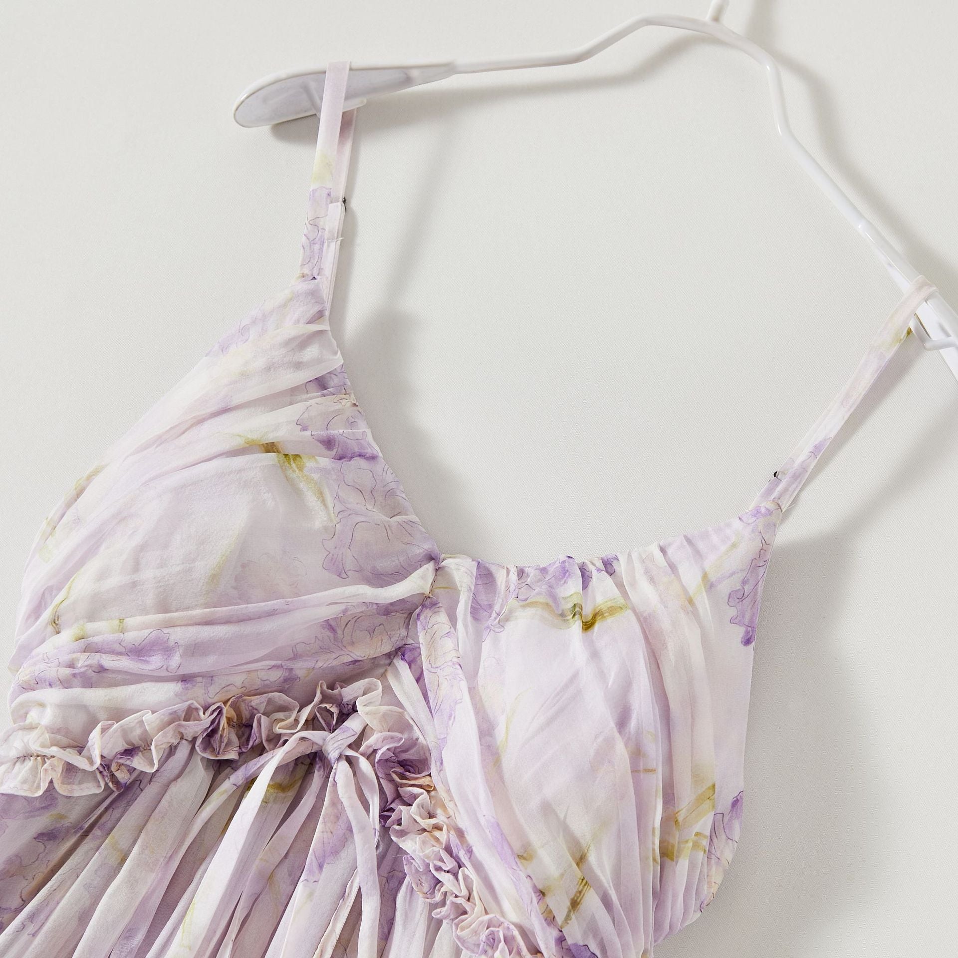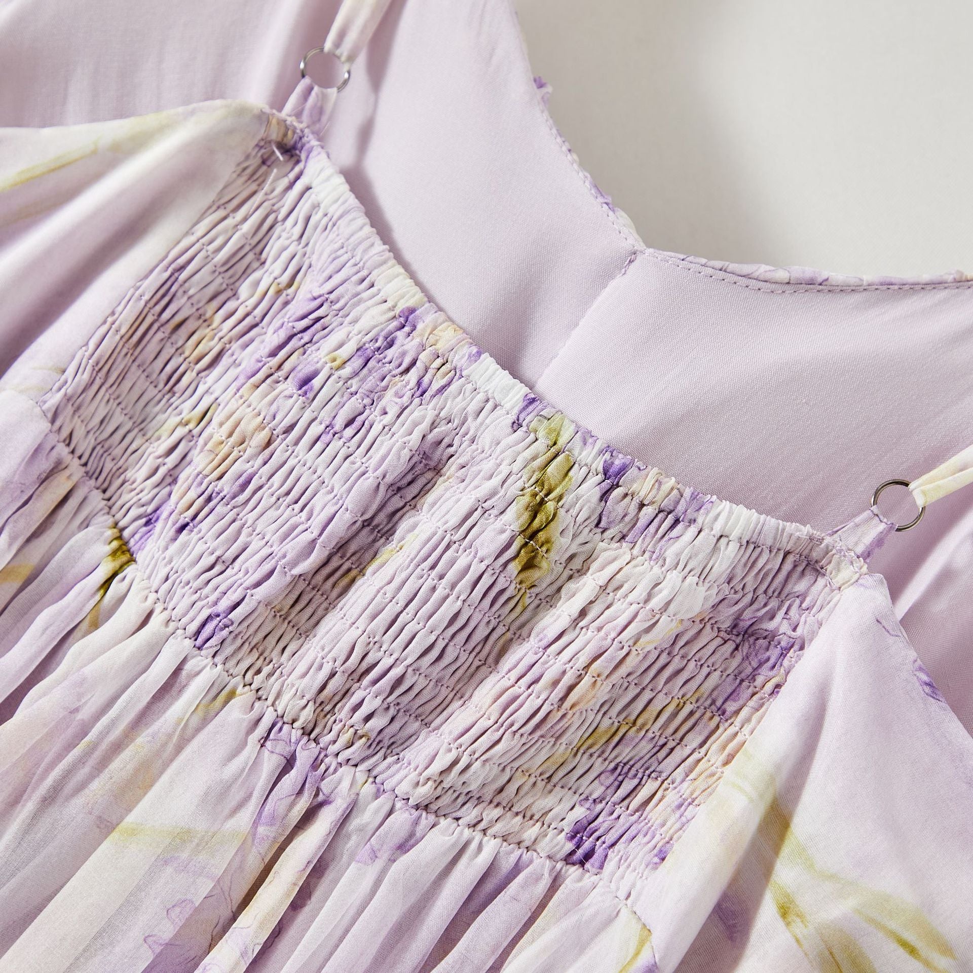 Lavender Tie-Dye Floral V-Neck Drawstring Cami Maxi Dress | Vacation Elegant Beach Dress