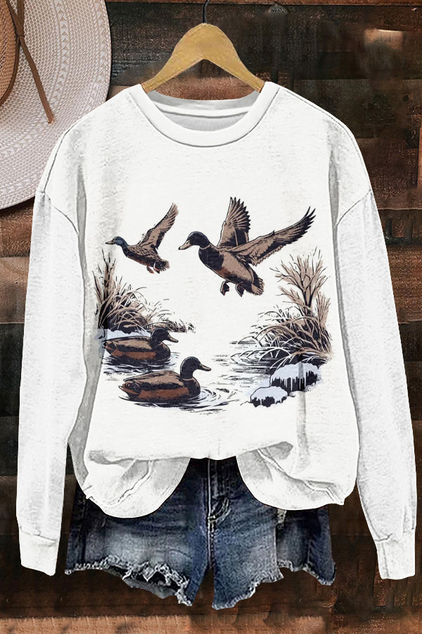 Classic Wild Ducks Print Sweatshirt