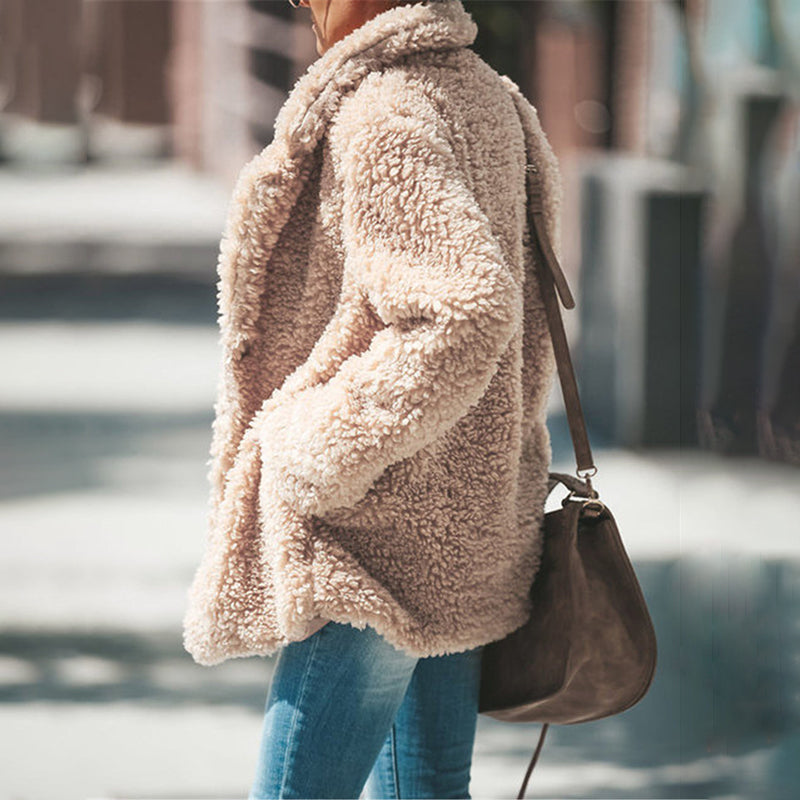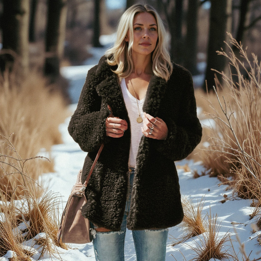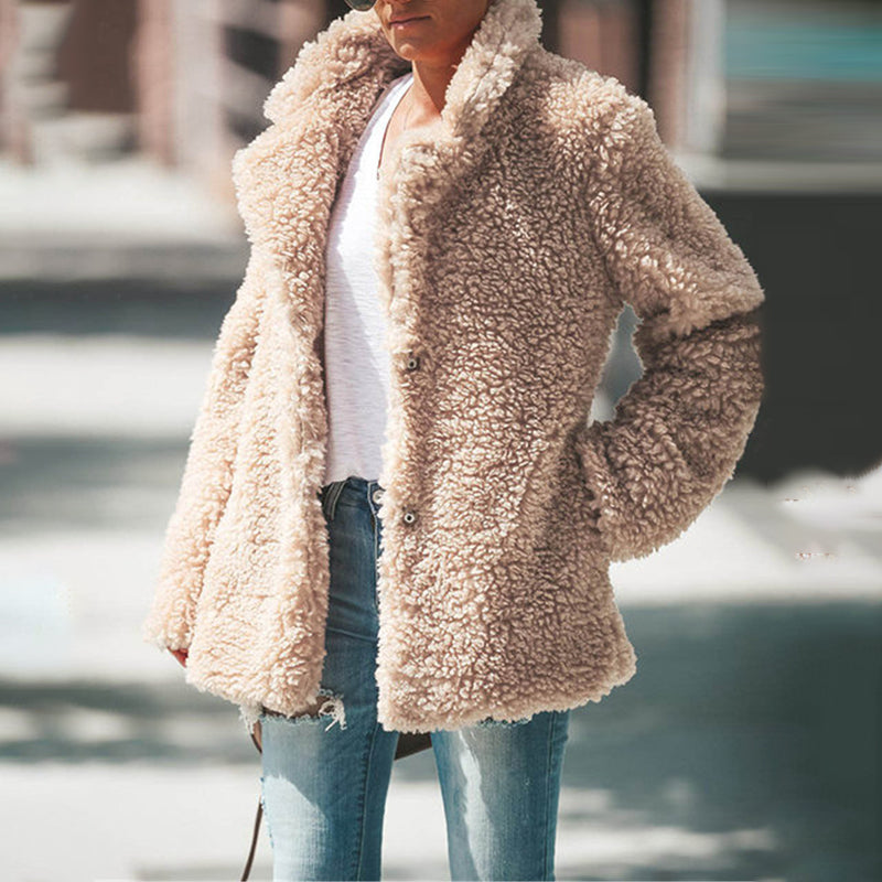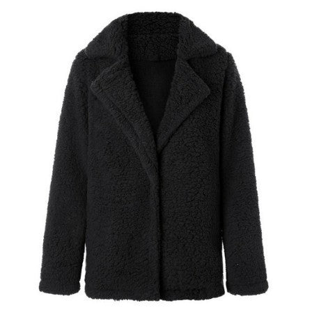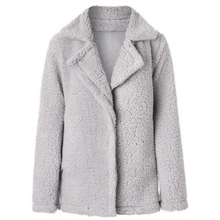 Plush Coat Lapel Solid Color Long Sleeve Cardigan Coat
