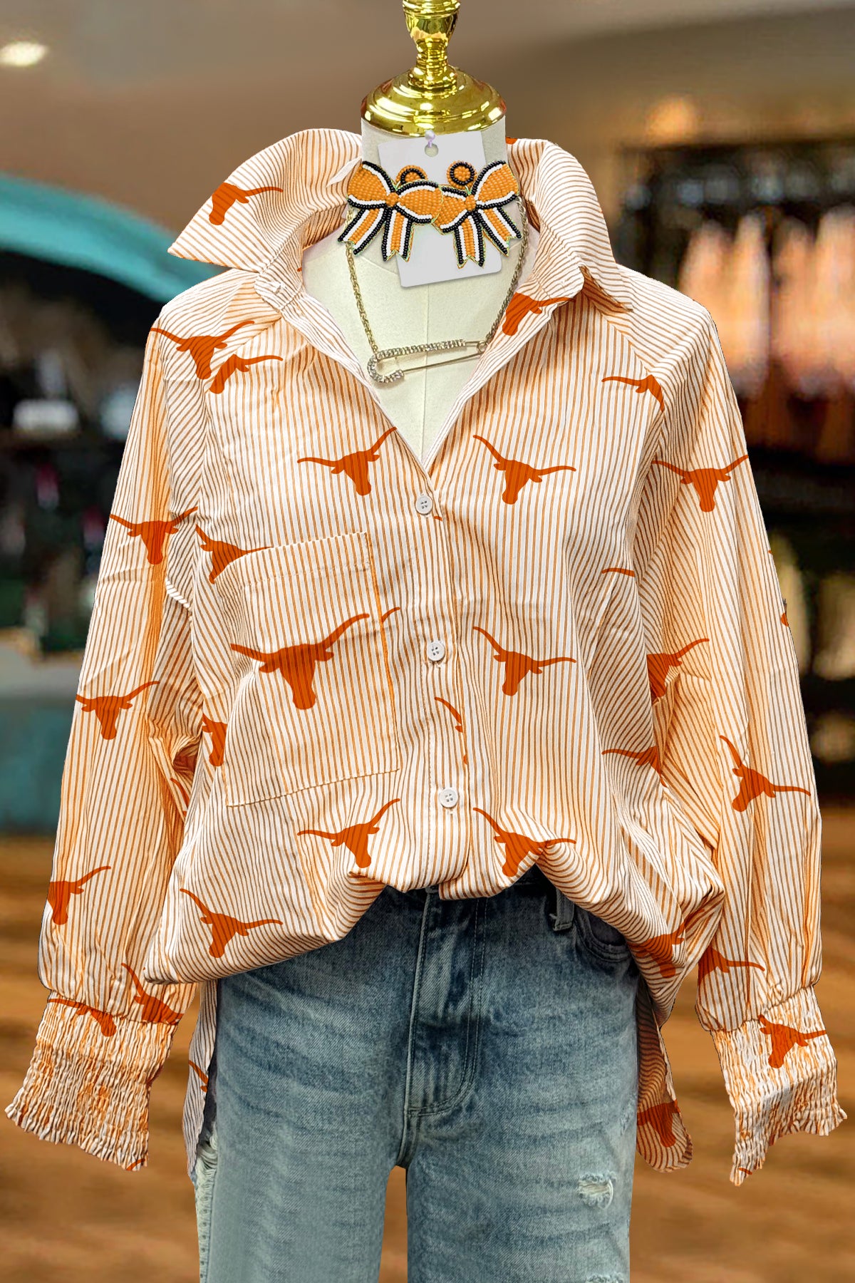 Classic Texas Longhorns Print Long Sleeve Top