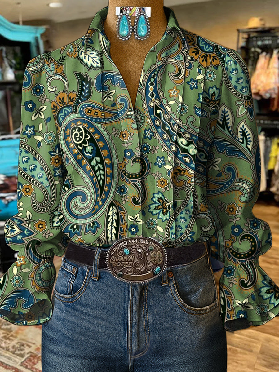 Vintage Paisley Print Casual Cotton And Linen Shirt