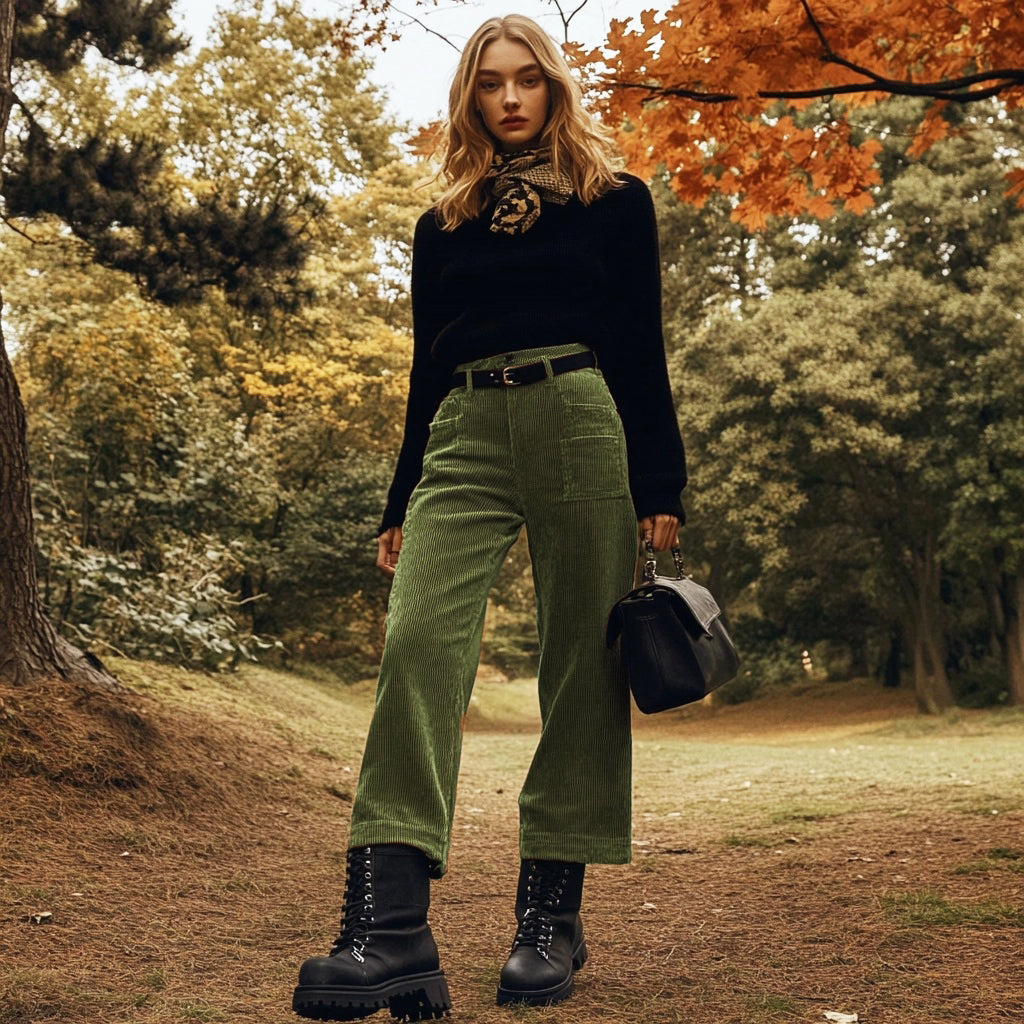 Women's Dark Academy Corduroy Casual Solid Trousers