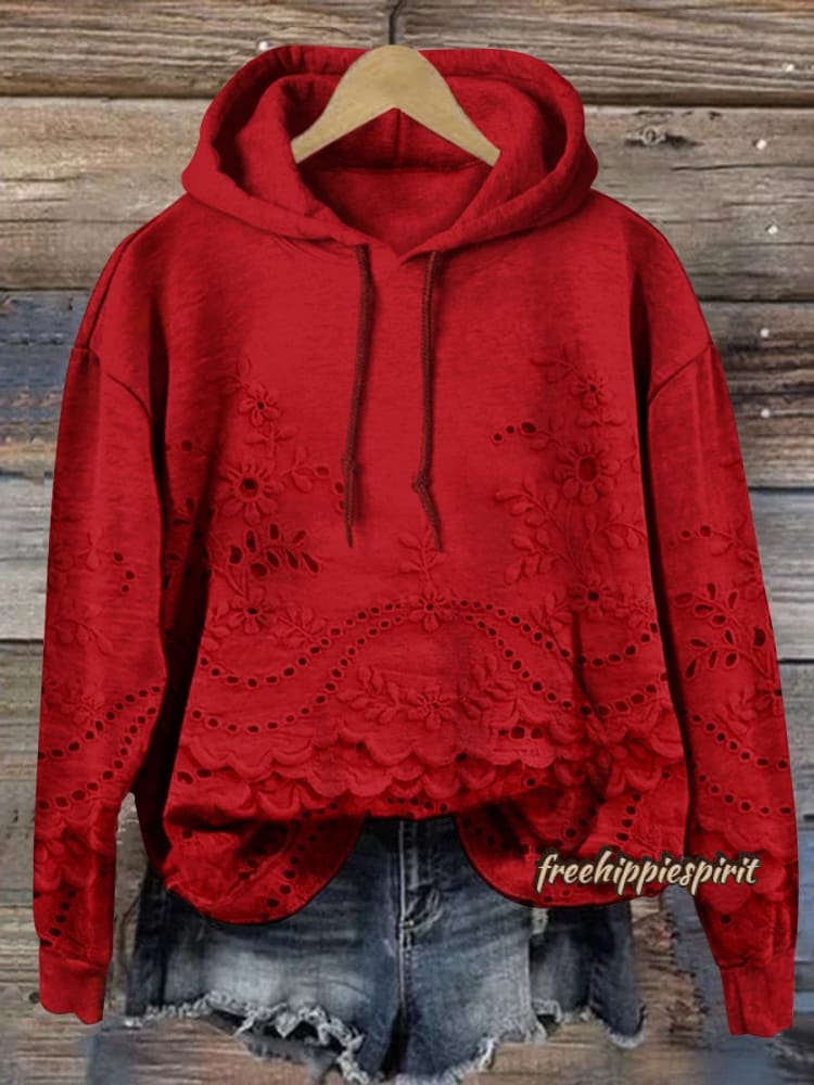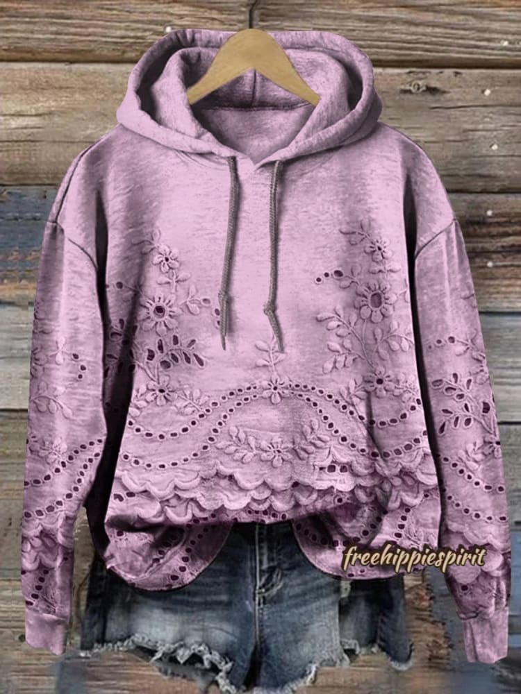 Women's Floral Textured Art Patterns Prints Casual Pocket Hooded Sweatshirt