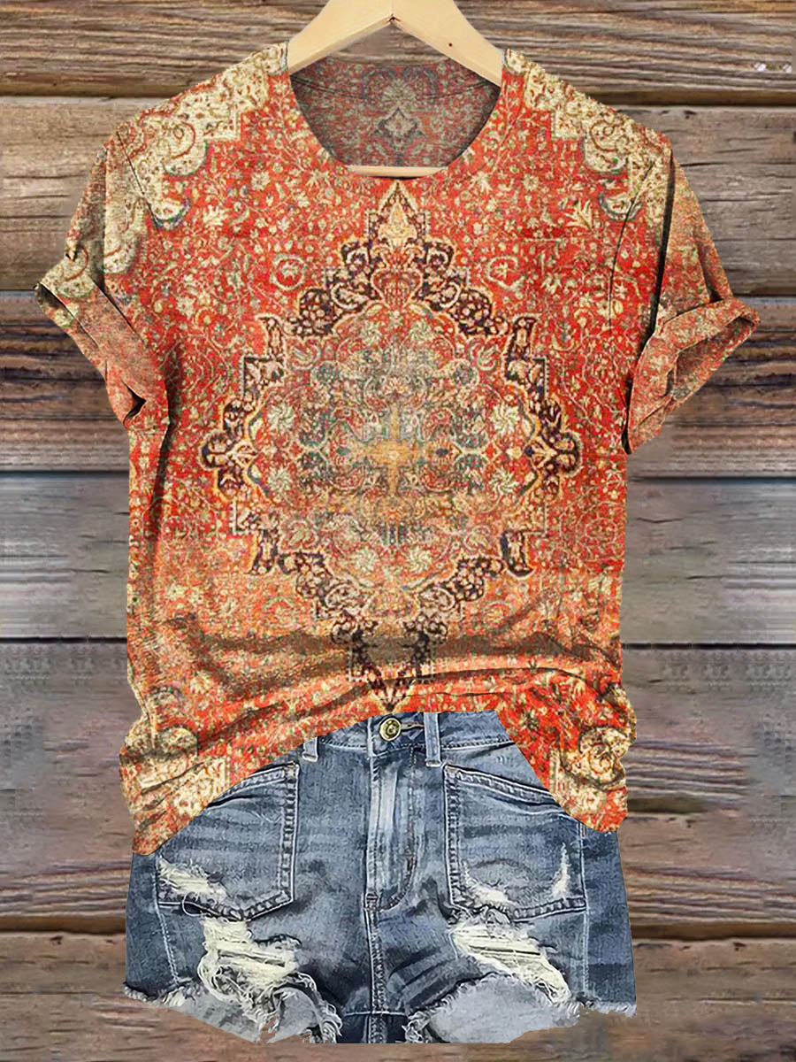Women's National Floral Art Pattern Print Crew Neck T-shirt