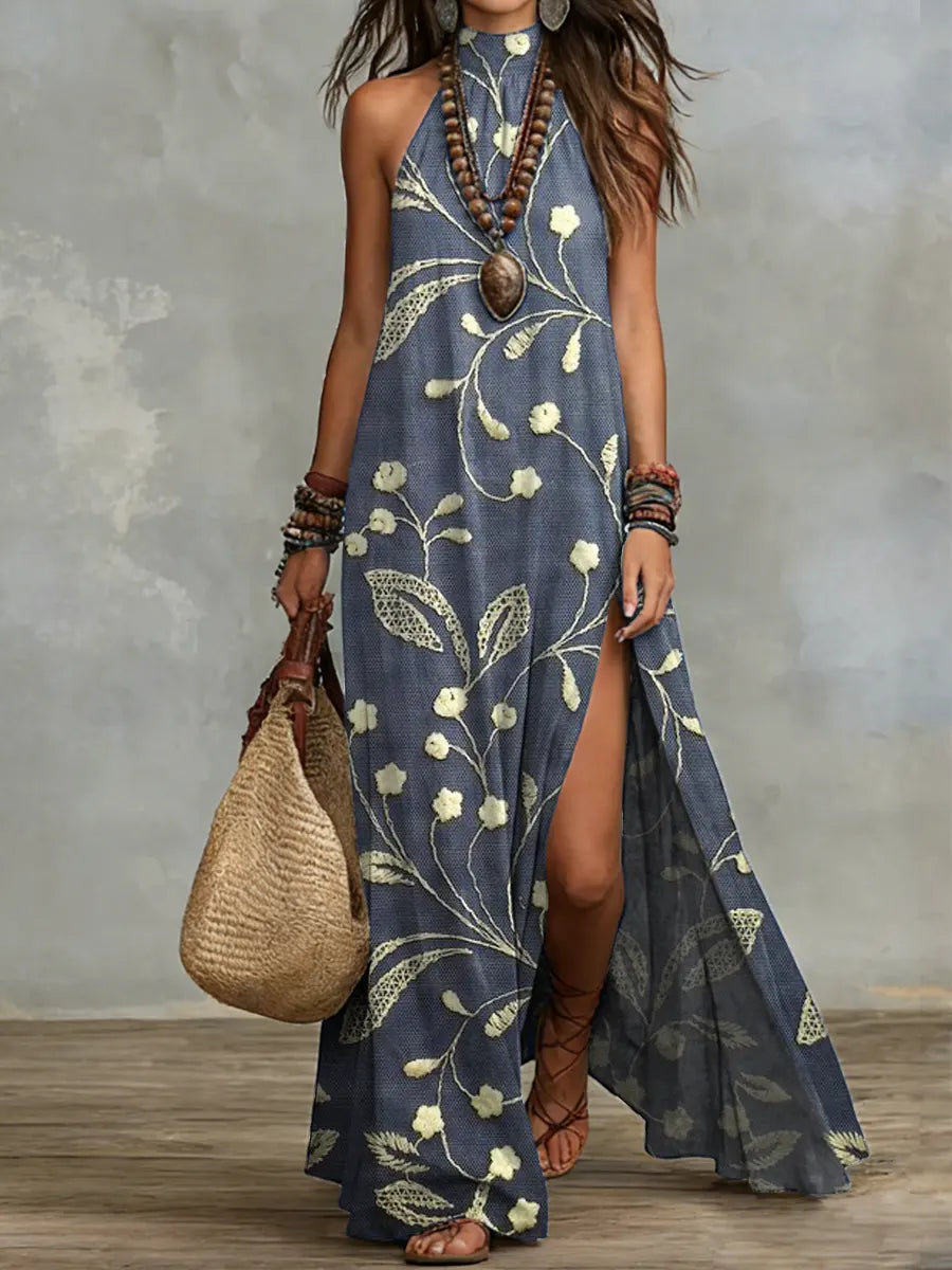Women's Retro Floral Pattern Art Print Casual Stylish Cotton Dress