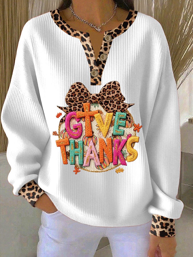 Women's Thanksgiving Print Knitted Crew Neck Long Sleeve Top
