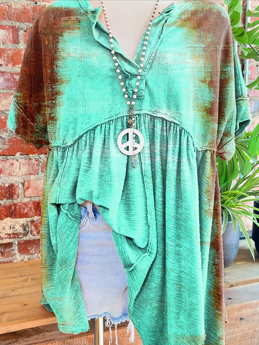 Women's Vintage Floral Print Folds V-neck T-shirt