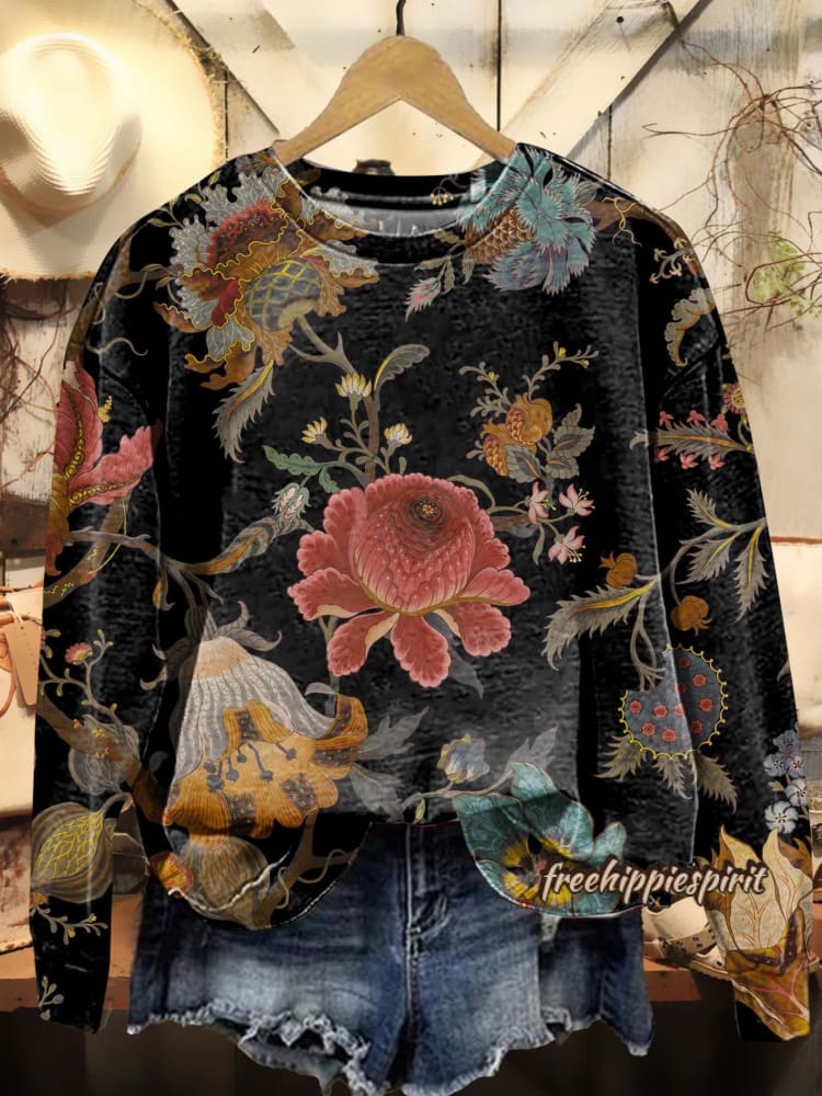 Women's Vintage Gorgeous Floral Print Casual Crew Neck Sweatshirt